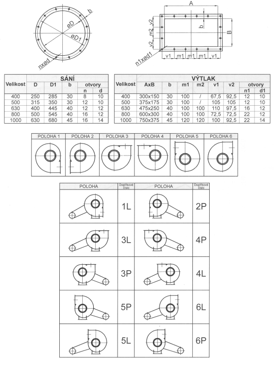 Poloha spirální skříně se určuje při pohledu ze strany sání.