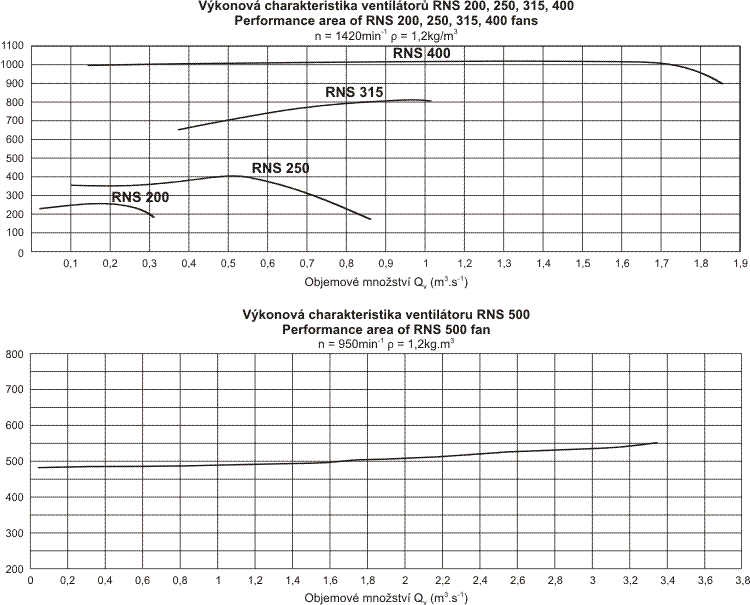 - Výkonové charakteristiky ventilátoru
