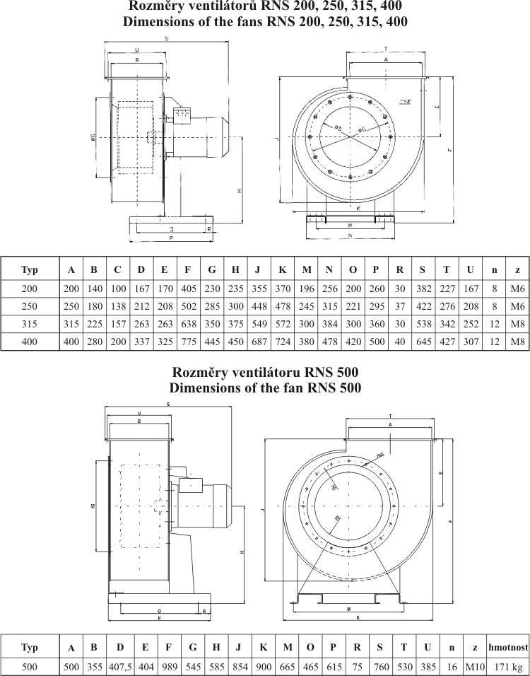 Ventilátory jsou zhotoveny z pozinkovaného plechu, pohon se děje na přímo trojfázovými elektromotory o výkonu 0,25kW, 0,37kW, 1,5 kW , 4,0kW a 5,5 kW. Pro rozšíření výkonu ventilátoru lze otáčky elektromotoru regulovat příslušnými frekvenčními měniči.