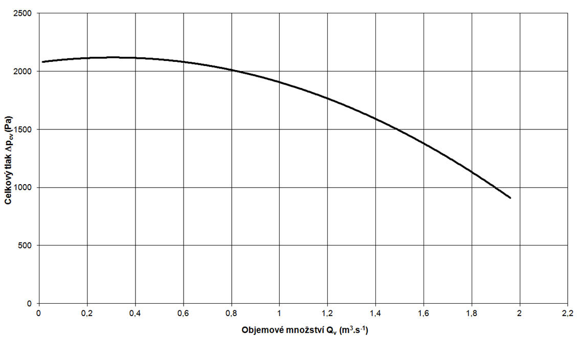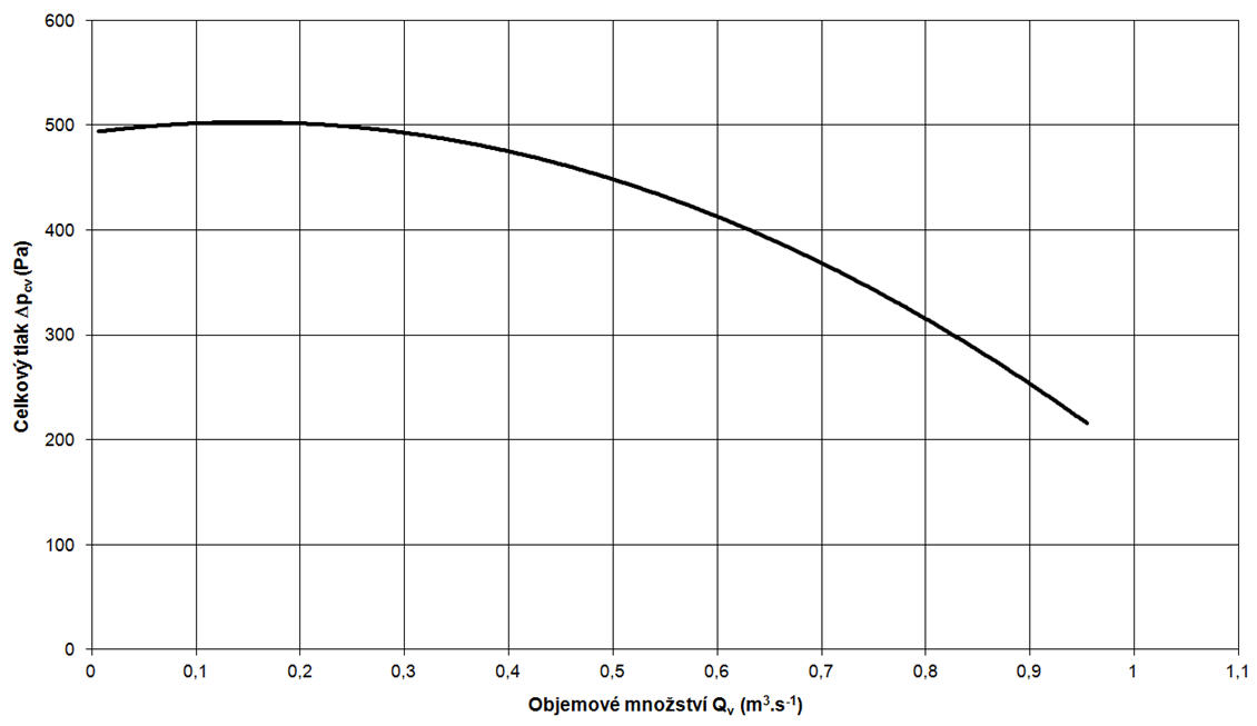 Výkonové oblasti ventilátoru RSS 400 na přímo - motor 1,1 kW, otáčky 1410 1/min