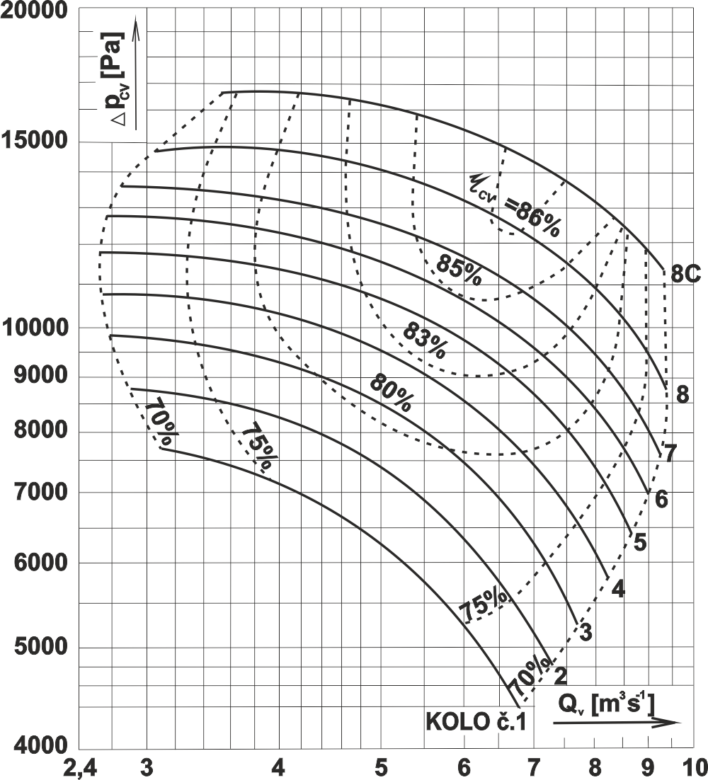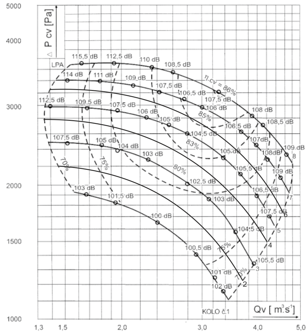 Výkonové oblasti ventilátoru RVI 800